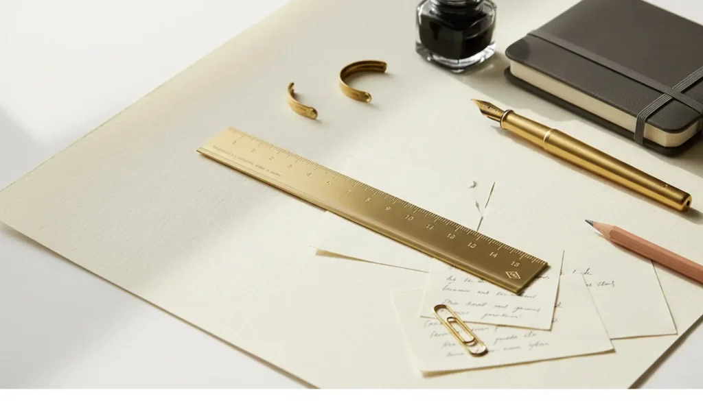 직선은 가장 강력한 언어입니다. 북다트가 문장의 위치를 기억한다면, 미도리 황동 자는 그 문장들 사이의 관계를 정의합니다. 카웨코 만년필과 함께 이 자를 사용해 보세요. 소재가 주는 통일감은 시각적 평온을 주고, 종이 위를 지나는 묵직한 금속의 느낌은 당신의 결정에 확신을 더해줄 것입니다.