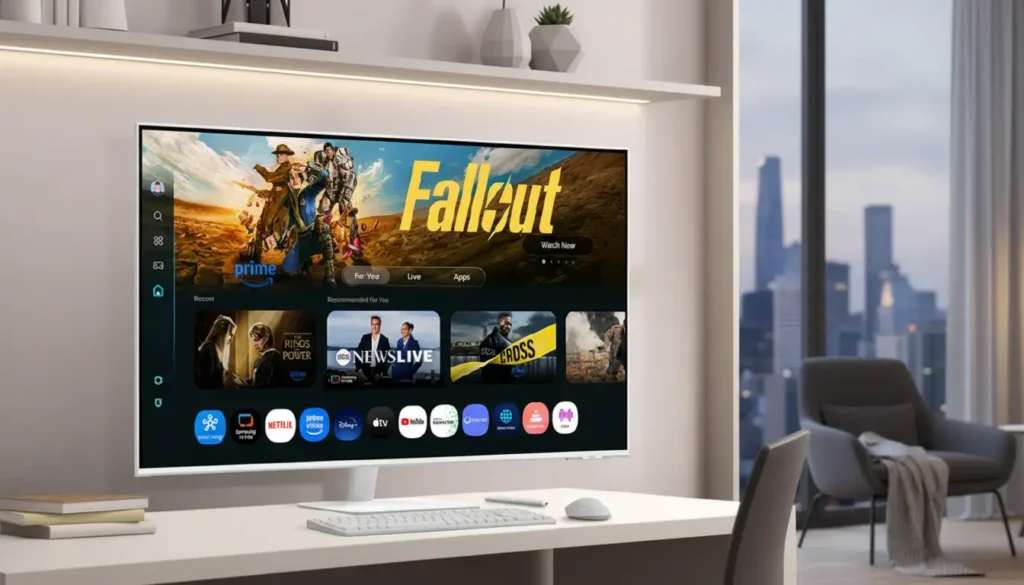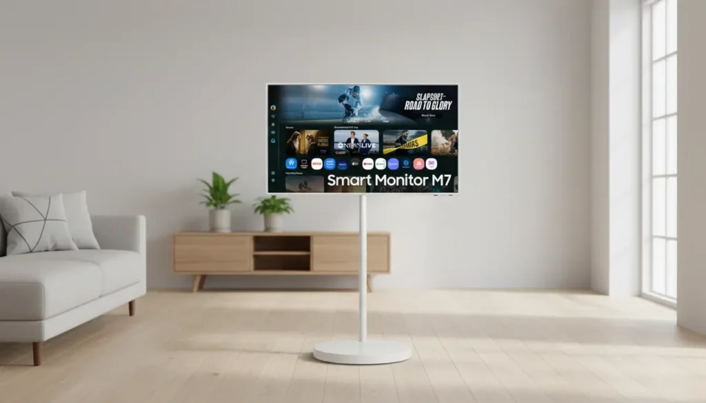 이 제품의 본질은 ‘자유도’에 있습니다. 하단의 히든 휠을 이용해 침대 옆에서 넷플릭스를 즐기다가도, 업무 시간에는 책상 옆으로 끌어와 보조 모니터나 화상 회의용 화면으로 즉각 전환할 수 있습니다. PC 연결 없이도 MS Office나 삼성 Dex를 지원하여, 공간을 차지하는 본체 없이도 오직 모니터 한 대만으로 ‘성장하는 업무 환경’을 구축할 수 있다는 점은 미니멀리스트 리더들에게 최고의 메리트입니다.